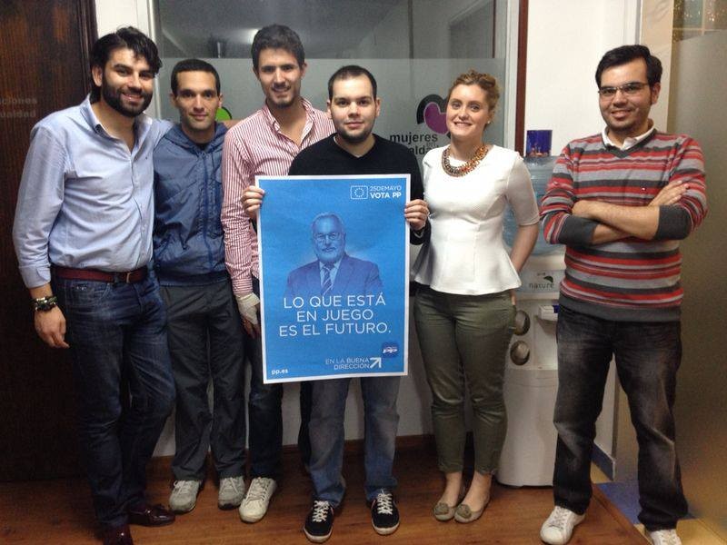 Afiliados de Nuevas Generaciones preparados para la pegada de carteles