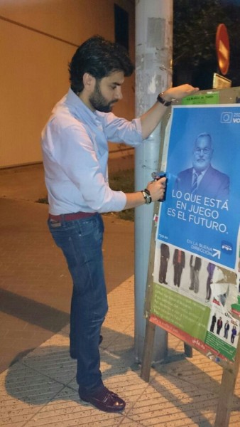 Luis Miguel Berandón, Secretario General, pegando carteles