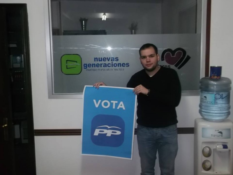 Víctor, Presidente NNGG Mieres preparado para la pegada de carteles