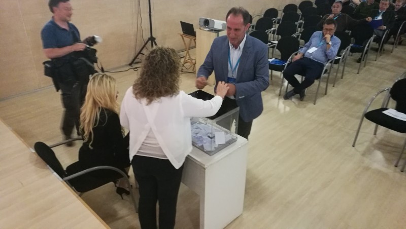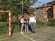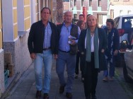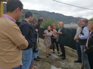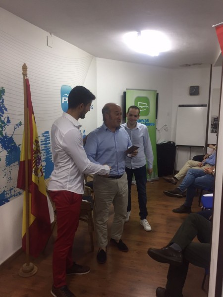 Entrega a Luis Venta de un disco del Coro Minero de Turón por parte de José Manuel Buján