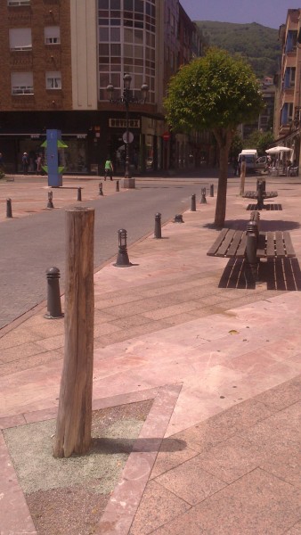 Pedro, vecino de la calle Doce de Octubre, nos envía esta foto. Señala que corresponde a dos arboles ubicados frente a la Plaza de Abastos que al encontrarse secos han sido talados por operarios municipales. Dice que no entiende como se puede cortar un árbol por la mitad del tronco y dejarlo así durante meses en lugar de sustituirlo por otro. Concluye comentando que esta "práctica" ya la ha visto realizar en la calle Aller, en el tramo que colindante con el Parque Jovellanos.