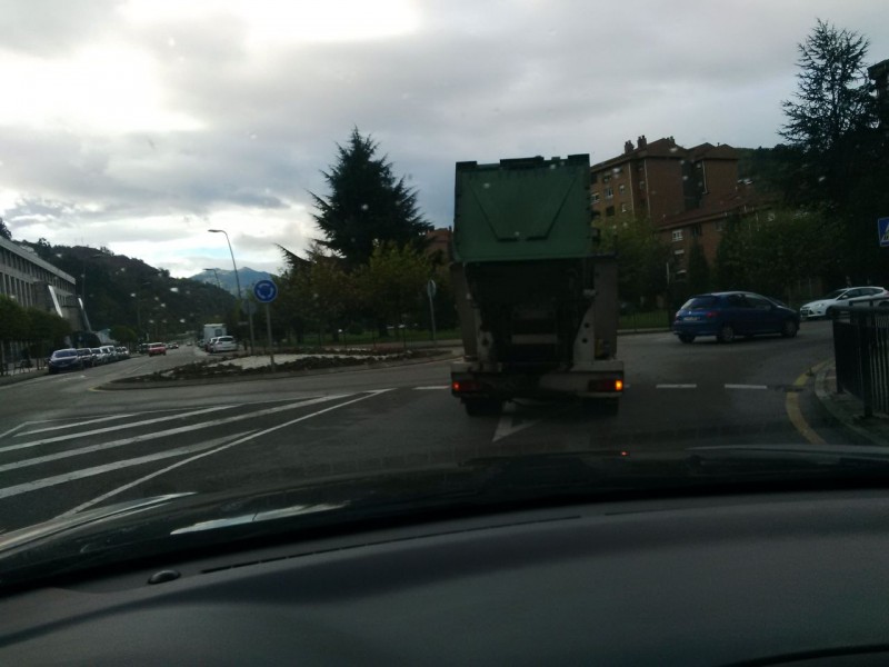 De verdad, ¿no hay otra forma más segura de trasladar un contenedor?. Nos hacen llegar hoy esta foto, tomada de esta misma mañana