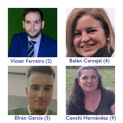 Los 2 concejales repetirán en puestos de salida, el ya citado Fernando como cabeza de lista, y Piedad Martínez como número 3, siendo las novedades más reseñables las siguientes: