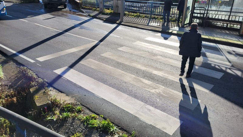 El PP de Mieres exige la "modificación inmediata" del paso de cebra de la Lavandera, pintado tras la reforma de la AS-337 y que aún no se ha corregido.