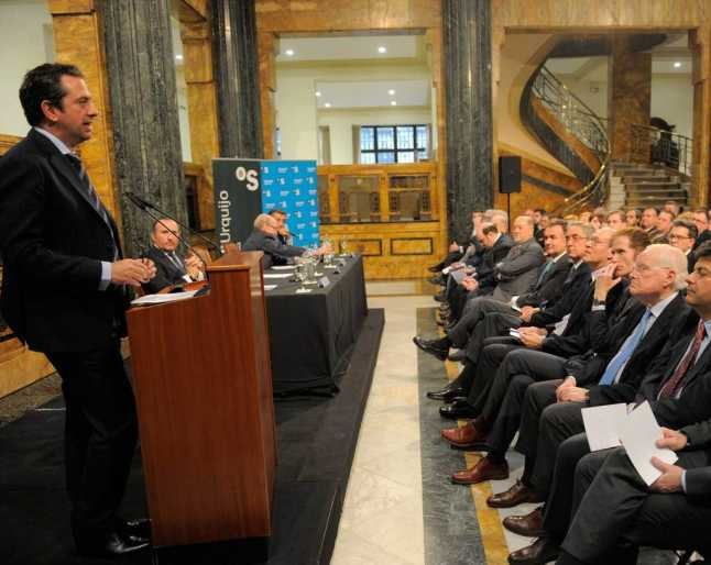 "La economía española ha cambiado de rumbo, ahora se crece por encima de la media de la zona euro", explicó, "hemos dejado de ser un problema para ser una solución, crecemos y todos nuestros motores están funcionando a pleno rendimiento". El mayor peso de las exportaciones sobre el PIB español, explicó, ha ocasionado que el país sea ahora mucho más sensible a los vaivenes de los mercados internacionales. Aseguró en otro momento la salida de Grecia de la zona euro "no está en la agenda". Fernández de Mesa destacó también el papel de los emprendedores, "y más en una tierra como Asturias donde ha habido muchos y de mucho éxito", resaltó.